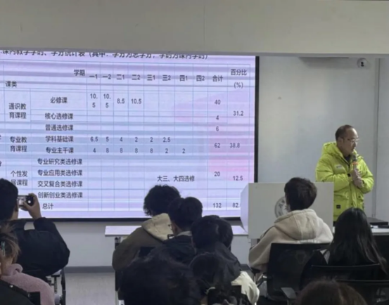 学院李波老师为同学们进行细致入微的学业指导,活动围绕学业发展、职业规划等学生关切的热点问题进行了深入交流。详细解读专业培养方案、课程体系结构及其特点,分享专业领域的前沿动态与社会需求,并结合自身丰富的专业知识和职业经历,引导学生树立积极的职业观和价值观,鼓励学生们在掌握扎实专业技能的同时,注重综合素养的全面提升,尽早进行职业生涯的启蒙与探索。