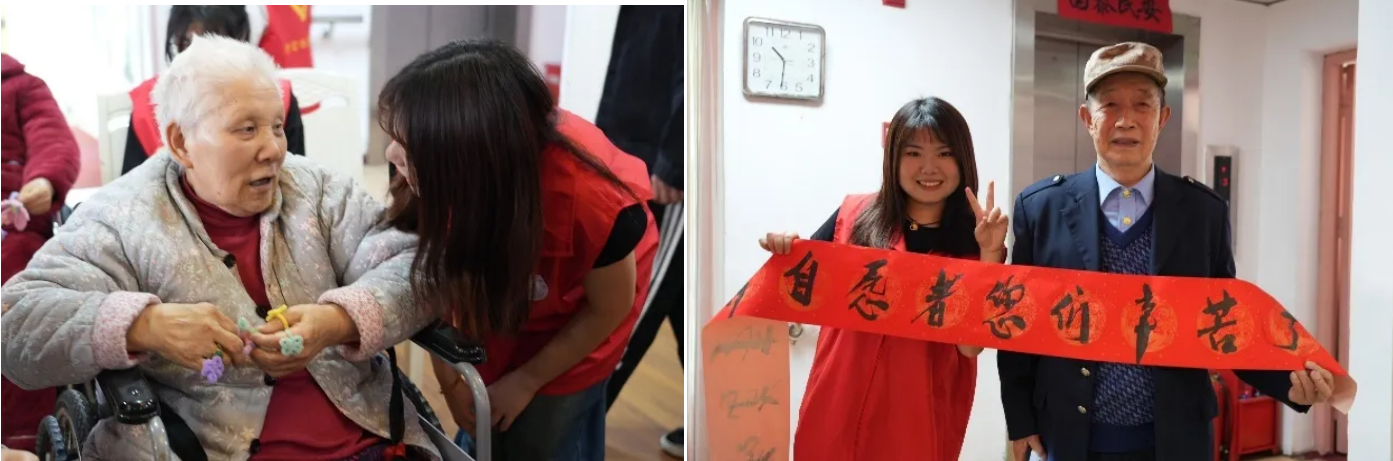 她身着红马甲,是青年志愿者服务队的温暖身影。