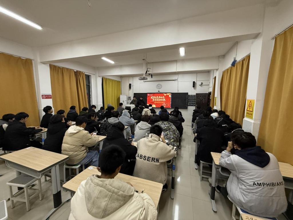 为积极响应国家征兵号召,扎实推进大学生征兵工作,12月12日,文学与传媒学院退役士兵刘宸宇、付世鹏面向我院2025年级全体男生开展征兵政策宣讲暨军旅故事分享会,会议由辅导员杨辰晖老师主持。