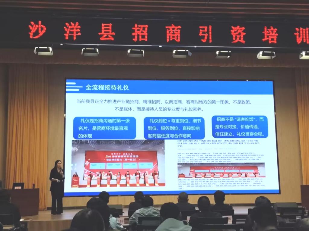 培训紧扣沙洋招商工作实际,围绕接待礼仪、沟通技巧、流程把控及客商需求对接等核心要点授课。内容兼具理论深度与实战价值,通过系统梳理、案例剖析,精准补齐参训人员业务短板,有效提升招商队伍专业服务能力与综合素养。参训学员纷纷表示,培训内容贴合工作、实用性强,切实解决了招商接待中的痛点问题,对提升专业服务水平帮助极大。